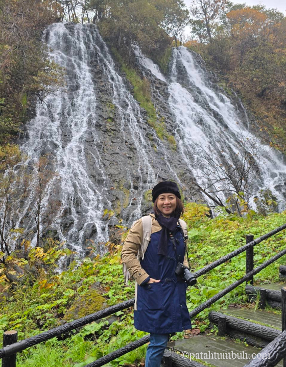 Setelah pelayaran, kami singgah di Oshinkoshin Falls, air terjun kembar setinggi 30 meter yang dijuluki “Air Terjun Indah yang Mengalir di Jalan Raya”. Hanya 15 menit dari sana, hujan kembali menemani perjalanan ke Danau Notoro. Kami tidak berhenti lama karena hujan.